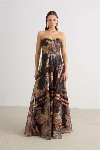 Carmen Kahve Straplez Jakarlı Abiye Elbise (58606-38)