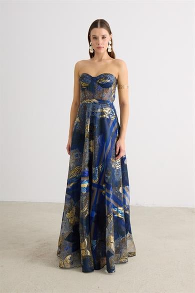 Carmen Lacivert Straplez Jakarlı Abiye Elbise (58606-14)