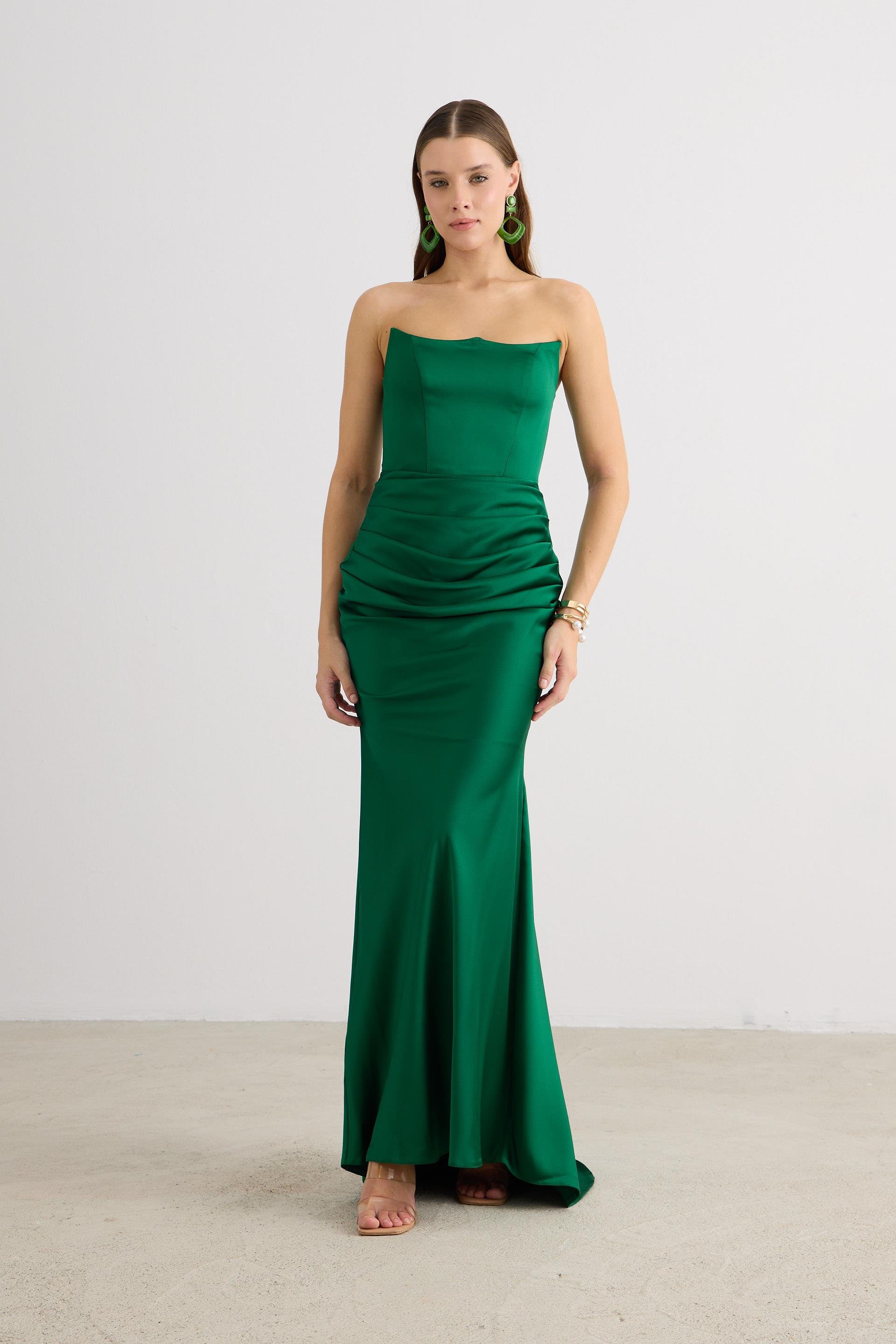 Carmen Zümrüt Straplez Uzun Saten Abiye Elbise (58565-34)
